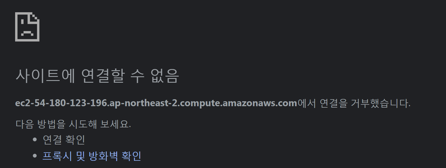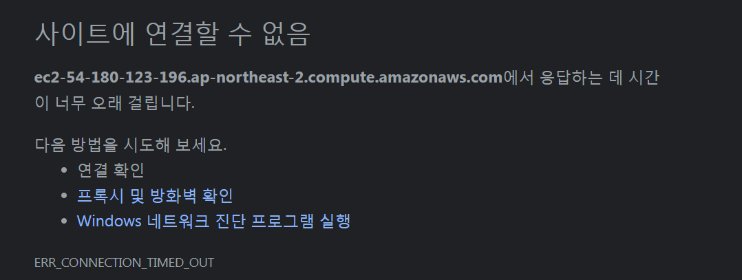 ❗ 보안그룹에서 8080포트로의 인바운드 트래픽을 허용하고 있는지 확인하란다.