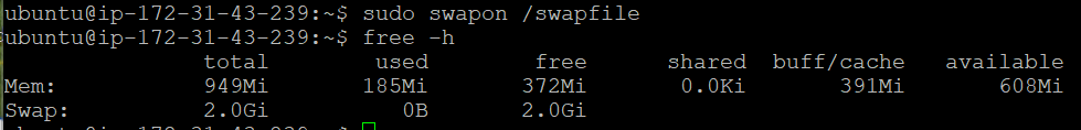 => 나는 테스트하는 과정이라 안했지만 시스템 재부팅이 되어도 만들어진 스왑이 적용될 수있게 할 수 있다.