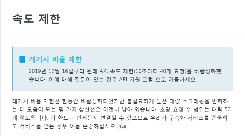 속도 제한이 있다. 그러나 우리 프로젝트에 제한될만한 사용량이 없을거라고 판단했다.