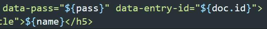 저 변수들은 여기서 나온 것인데 getDocs 를 통해 collection 속 docs를 불러오고 각각의 doc에서 가져와서 선언한 변수들을 <div> 안에 사용자 정의 데이터로서 추가적으로 저장한 것이다.