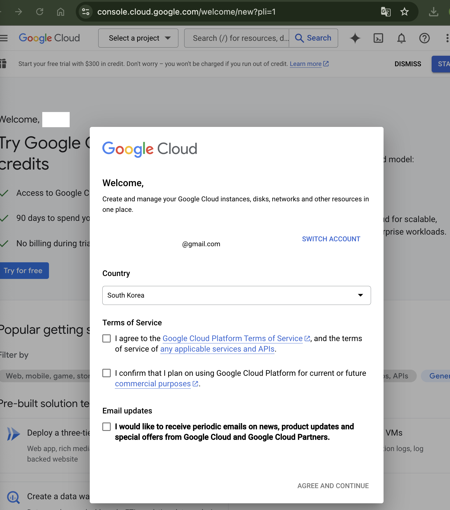 처음 접속하면 서비스 동의 과정부터 필요하다