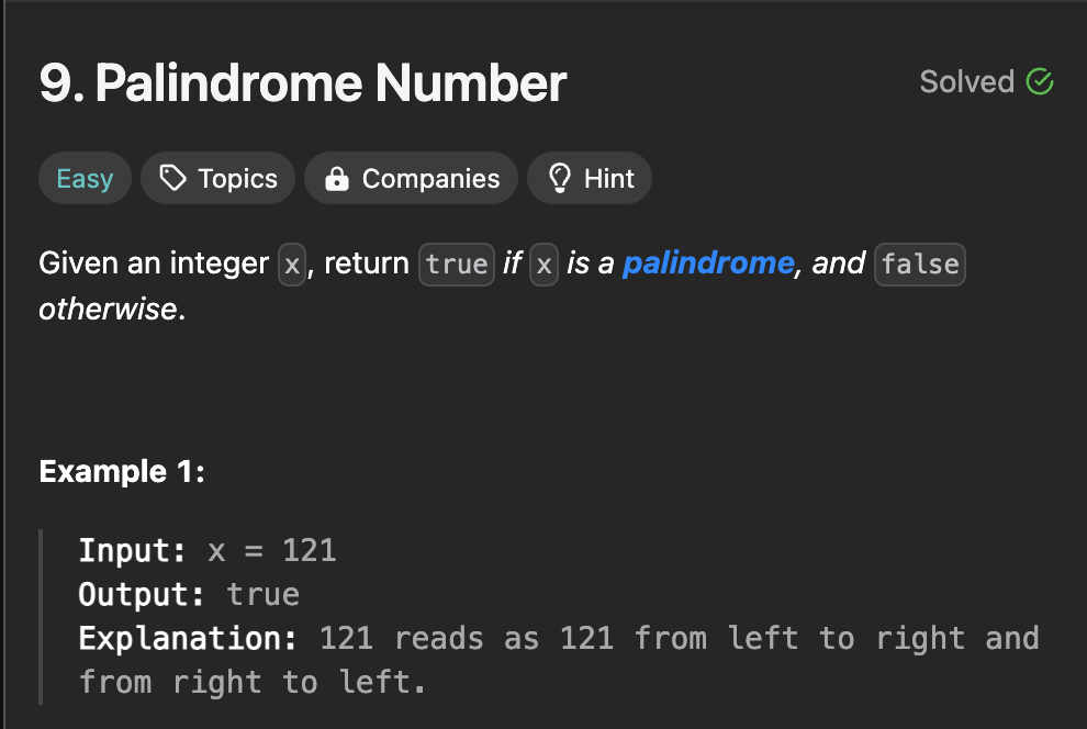 https://leetcode.com/problems/palindrome-number/description/