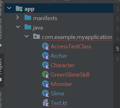AccessTestClass 클래스 안에 여러 접근제한자를 적용한 변수를 만들어 놓음