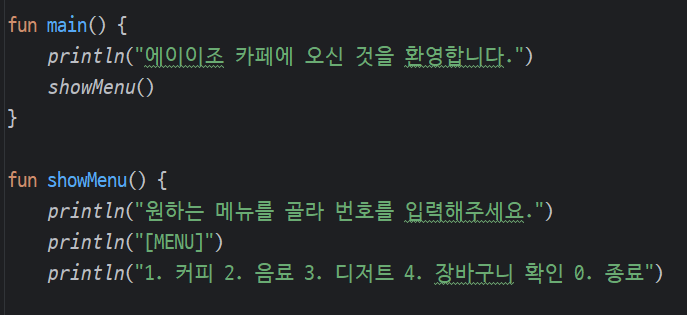 - 카테고리를 선택하면 해당하는 메뉴들을 보여준다.