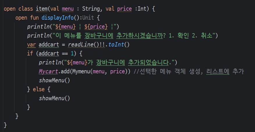 - 모든 메뉴는 item 클래스를 상속받는다.