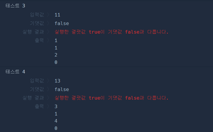 출력한 값은 맞게 나오는데 왜 false 로 나와야할게 true 로 나오는 걸까