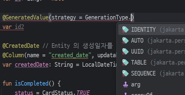 : 기본키의 생성방식을 결정