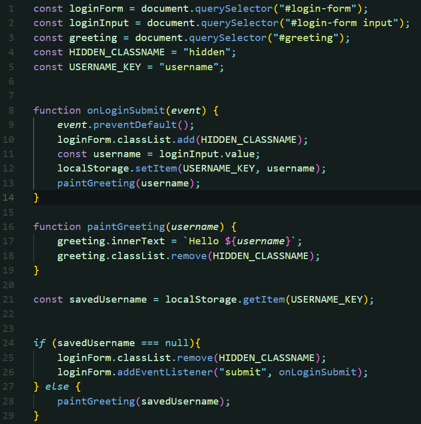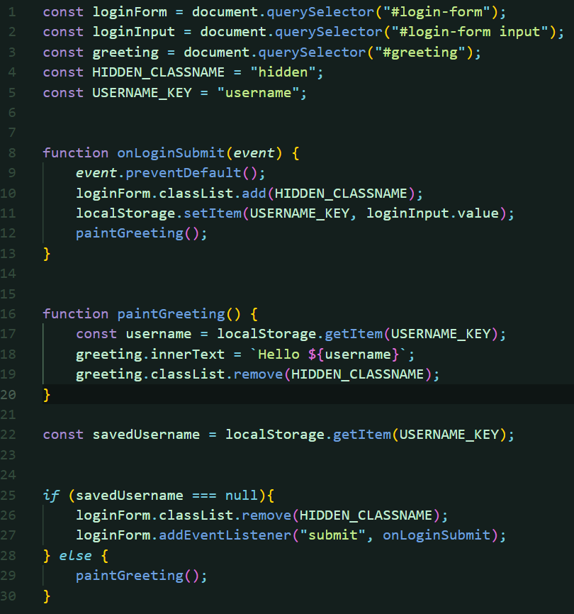 localStorage에 저장된 USERNAME_KEY 값을 함수 안에 대입한다.
