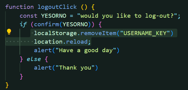 이제 확인을 눌렀을 때 스토리지도 지워지고 리로드도 됐으면 하는데 이젠 리로드가 안된다?