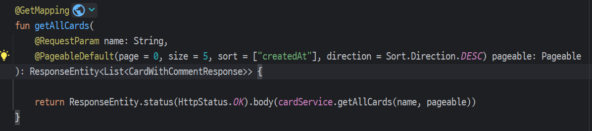 fun getAllCardsWithComments(name: String , pageable: Pageable): List<CardWithCommentResponse> {