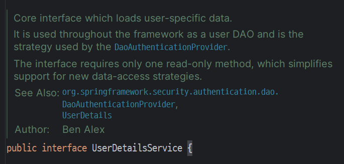 UserDetailsService 는 UserDetails 객체를 반환한다.