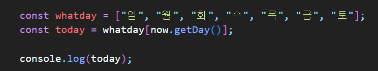 리스트에 일요일부터 토요일까지 집어넣고 Getday로 나오는 숫자를 이용해서 뽑아낸다.