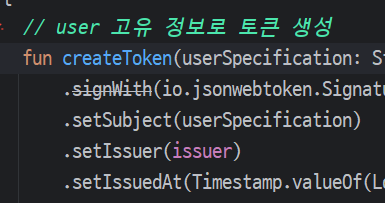 val token = tokenProvider.createToken("${user.email}:${user.type}") // 사용자 정보로 토큰 생성