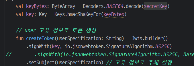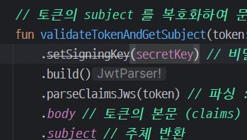 .setSigningKey(secretKey.toByteArray()) // 비밀키로 복호화