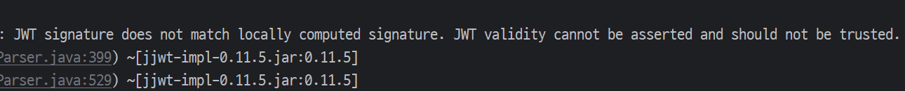 잘 따라했고 빗금도 없어졌는데 또 JWT 에러가 떴다.